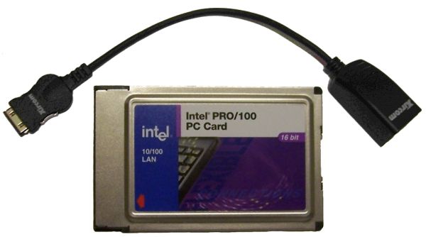 Intel PRO/100 MBLA1600 P/N 670666-003 LAN 10/100 PCMCIA PC Card with Dongle
