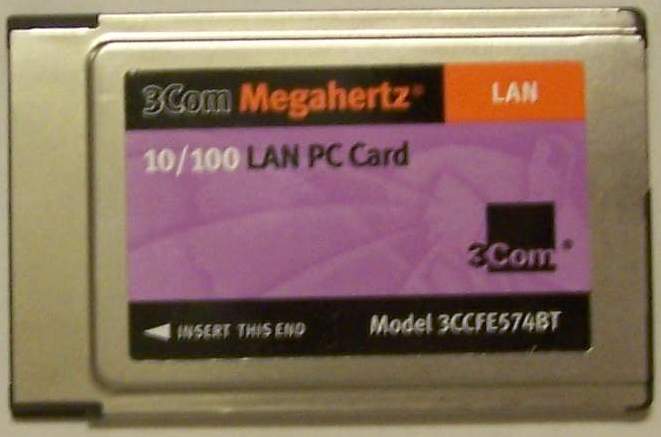 3Com Megahertz 10/100 LAN PCMCIA PC Card 3CCFE574BT network adapter for laptops